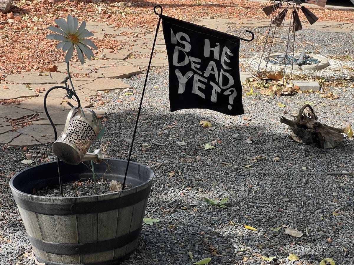 - “Is He Dead Yet?” — a flag openly anticipating Trump’s possible death